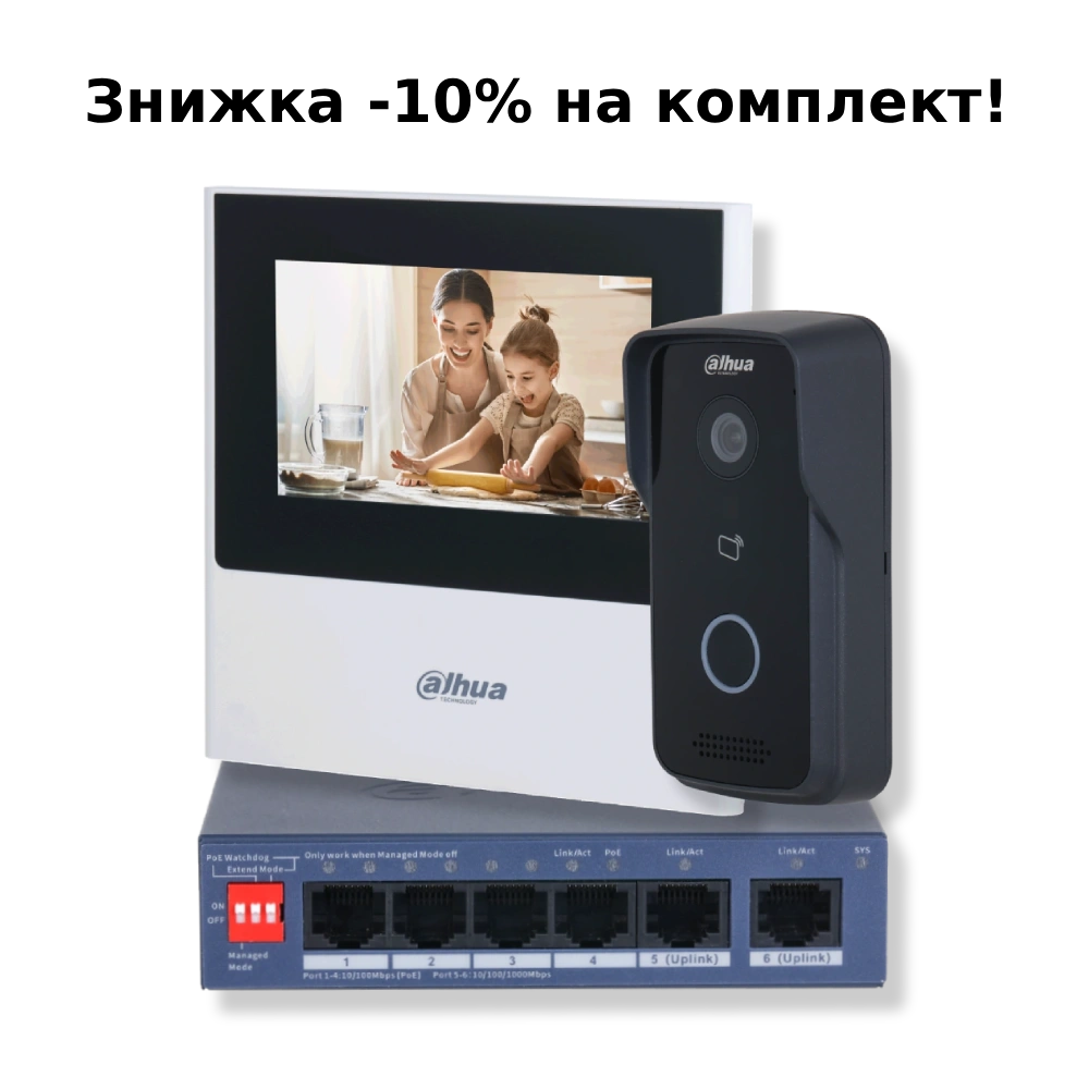 Придбання комплекту – це додаткова вигода в 10% порівняно з придбанням елементів комплекту окремо! Склад:-DHI-VTO2111D-P-S3-DHI-VTH2611L-WP-DH-CS4006-4ET2GT-36