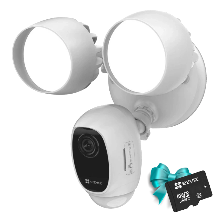 2 Mп Wi-Fi EZVIZ з сиреною; 2 LED лампи 2000 лм 3000К; Стиснення: Smart H.264, H.265, 1920 × 1080 25 к / с; PIR: 10м, кут 270 °, видиме світло: 25м, кут огляду 120 °. Функції: датчик руху, двосторонній аудіо зв’язок, 3D DNR, WDR, BLC; Micro SD до 256 Гб; IP65, -30 ° C – 50 ° C, AC 100-240В, 185x186x268 мм, 1.5 кг