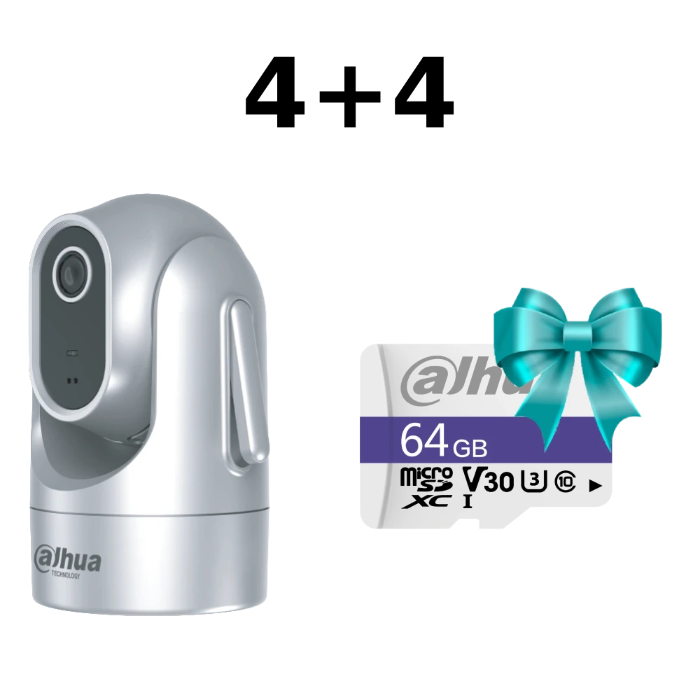 КУПУЙ 4 КАМЕРИ WIFI Dahua – отримай 4 карти пам’яті по 64 ГБ – в подарунок! ● Роздільна здатність 4МП 1/2.8″ CMOS;● Кут огляду 80.3°;● Максимальна роздільна здатність відео 4 МП (2560×1440) – 25 кс;● Кодеки Smart H.265+; H.265; Smart H.264+; H.264; H.264B; MJPEG;● ІЧ світло (до 15м);● Аналітика та аларми: виявлення людини, автоматичне стеження;● Micro SD (максимум 512ГБ);● 5 VDC