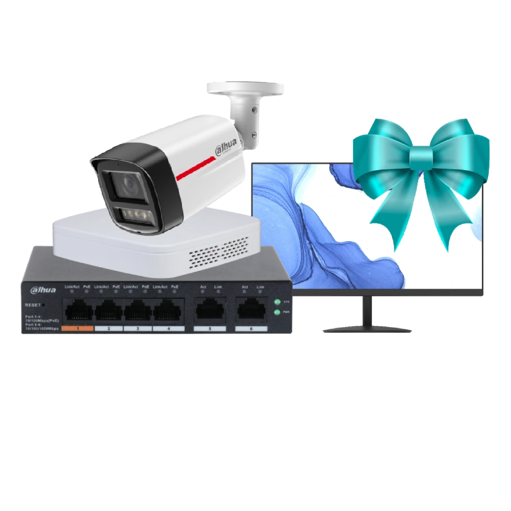 При купівлі КІТ-комплекту монітор Dahua в подарунок! ● Роздільна здатність 4МП, 1/1.8″ CMOS – матриця;● Фокус 2.8мм (кут огляду 112°);● Максимальна роздільна здатність відео 4 МП (2688× 1520) – 20 кс, та підтримка (2560×1440) – 25 кс;● Кодеки H.265;● Видимий світло (до 50м);● Функції зображення: поворот зображення, WDR, 3D DNR, HLC, BLC, водяний знак;● Аналітика та аларми: Вторгнення в зону, перетин лінії (дві функції підтримують класифікацію та точне виявлення автомобіля та людини), відсутність SD-карти; SD-карта заповнена; помилка SD-картки; відключення мережі; конфлікт IP; незаконний доступ; виявлення руху; підробка відео; вторгнення; SMD plus; виявлення недостатньої напруги;● Micro SD (максимум 256ГБ);● 12 VDC/PoE;● IP67;● Колір корпусу – білий