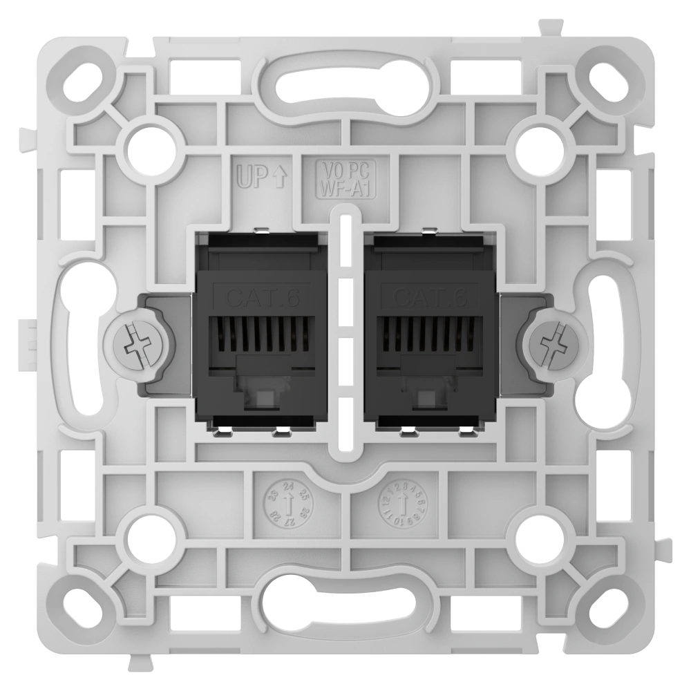 Outlet (LAN) — це вбудована Ethernet-розетка з двома портами, яку не можна додавати в системи Ajax і якою не можна керувати через застосунки Ajax. Пристрій має дизайн і кольори, ідентичні до розумних розеток і вимикачів Ajax, що дає змогу безперешкодно встановлювати їх поруч в одній рамці.