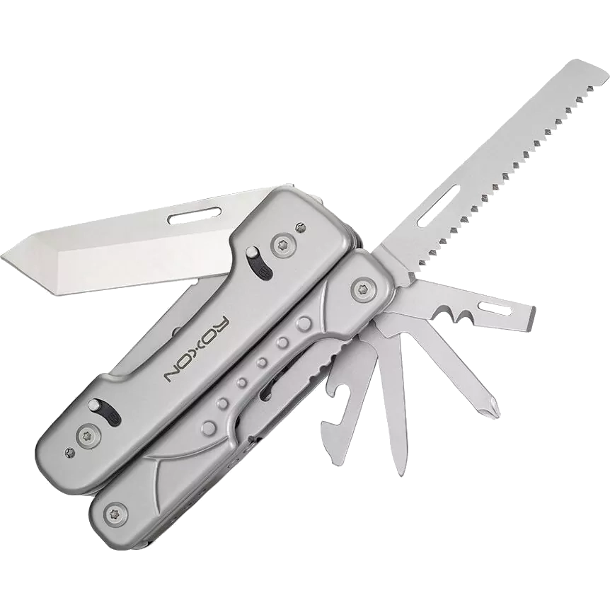 Модель мультитулу Roxon Phantom S802 нагадує вже знайомий мультиінструмент Storm S801S. Виріб доповнено змінними лезами та фіксаторами. Компактні розміри, надзвичайно зручне використання, багатофункціональність та ефективність. Модель розроблена за принципом класичного мультиінструменту, основне пристосування – плоскогубці. Тут 15 функцій до виконання різних видів робіт на практиці.