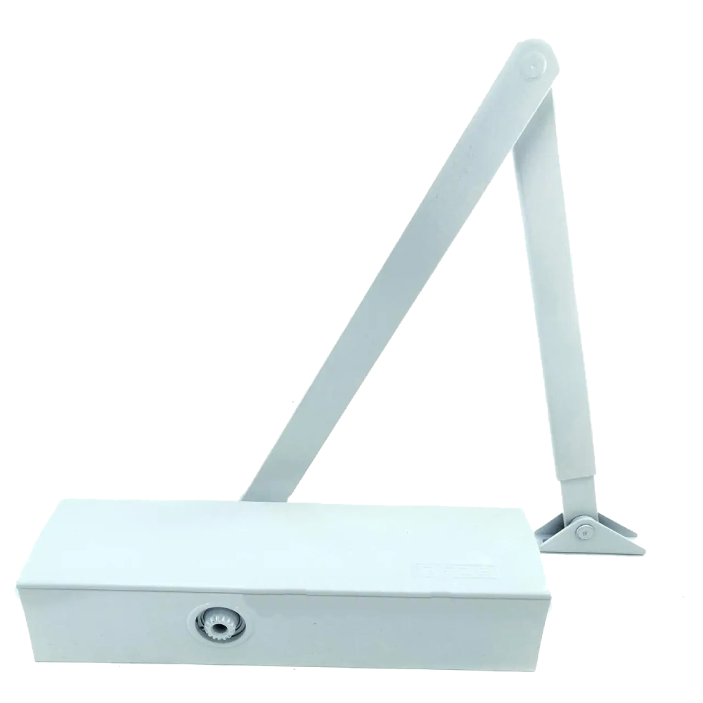 Вибіркова сила закривання EN 3/4 для стулок дверей шириною до 1250 мм простим повертанням кронштейна підшипника важільної тяги. Регульований гідравлічний кінцевий дохлоп та швидкість закривання. Для дверей з правим та лівим упором без перестановки. Сила закривання може обиратися з трьох значень 2, 3 або 4 і визначається вибраним варіантом встановлення тяги та доводчика щодо петлі. Роздільна регулювання швидкості закривання та «дохлопа».