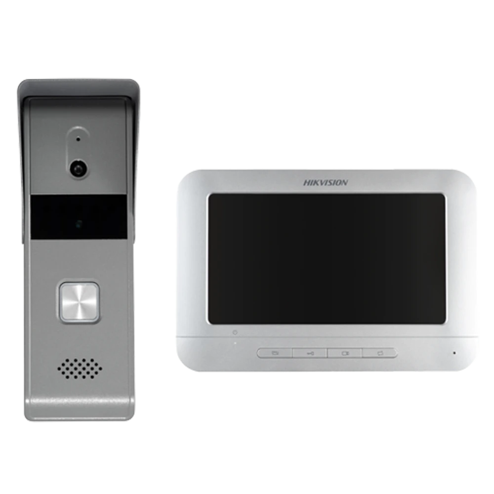 DS-KIS203T дозволить встановити зручний домофонний контроль за будинком, офісом, прохідною або в будь-якому іншому місці. В комплект входить панель виклику для відвідувачів, а також внутрішній домофон. Зовнішній металевий пристрій складається з дзвінка, відеокамери, динаміка та мікрофона. За допомогою цих функцій можна зв’язатися з контрольною точкою, що складається з дисплея та фізичних кнопок управління. Комплект передбачає можливість подивитися в реальному часі, хто прийшов, поговорити через аудіозв’язок та відкрити двері дистанційно. Підключення здійснюється аналоговим шляхом. Панель від DS-KIS203T захищена від впливів і може розміщуватись у тому числі на вулиці. Обидві складові вироблені Hikvision і легко підключаються завдяки максимальній сумісності.