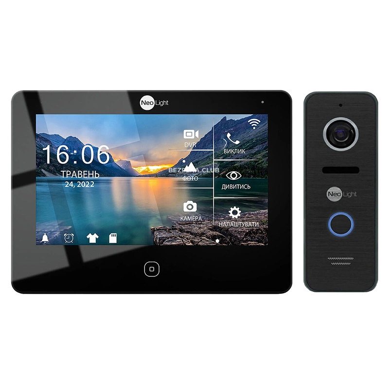 Домофон NeoLight Alpha HD WF: Wi-Fi, підтримка Full HD сигналу 1080р (1920х1080), IPS екран з високою роздільною здатністю 1024 х 600, запис відео та аудіо по руху, улюблена mp3 мелодія на виклик. Дозволяє переадресовувати дзвінок з відеопанелі на програму "NeoLight" (iOS, Android), встановлену на смартфоні або планшеті. Для підключення Alpha HD WF з роутером можна використовувати Wi-Fi або LAN з'єднання. Виклична панель PRIME FHD Black: Тип матриці камери CMOS; Роздільна здатність камери 1080p (1920 х 1080) / 800 ТВЛ; Формат сигналу AHD/TVI/CVI/CVBS; Кут огляду 110 °; Температура експлуатації – 30 ° С ~ + 60 ° С; Клас захисту IP66
