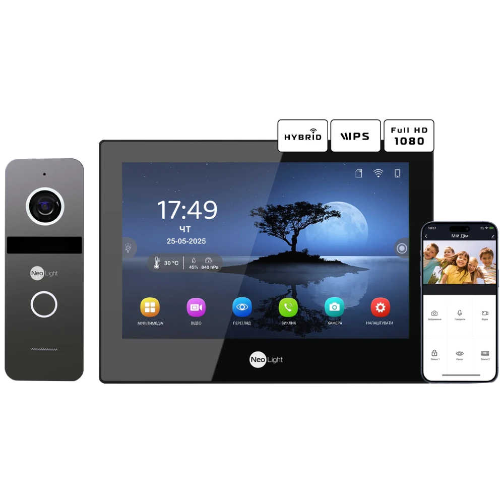 Комплект відеодомофону Neolight ALPHA Hybrid Black + SOLO IP Graphite с уголком, PoE адаптер для вызовной панели
