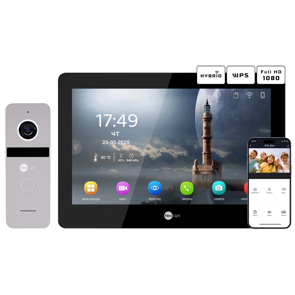 Комплект відеодомофону Neolight MEZZO Hybrid Black + SOLO FHD Silver