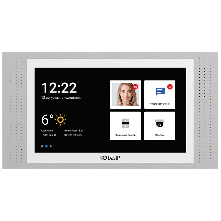 Внутрішній 7-дюймовий IP-відеодомофон з IPS-екраном, роздільною здатністю 1024×600, можливістю підключення датчиків тривоги та підключенням кнопки дзвінка. Внутрішній відеодомофон працює під керуванням ОС Android 6.0. Має два варіанти встановлення: настінне накладне кріплення та кріплення врізним монтажем із використанням спеціального кронштейна. AT-07L відкритий для встановлення сторонніх додатків будь-яких систем та виробників. Це дає практично безмежні можливості керування домашньою автоматикою. Якщо у вас вже є система "Розумний дім" від іншого виробника, все, що вам потрібно, це встановити мобільний додаток цього виробника на монітор BAS-IP. Це зробить керування створеними сценаріями зручнішим. Відеодомофон дозволяє завантажити власні MP3 мелодії як дзвінок і зробить прихід гостей завжди приємним.