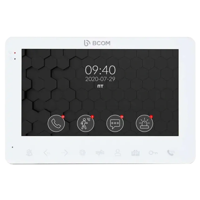 ● до домофона можливо підключити одночасно 2 Full HD (AHD/TVI/CVI) | аналогові панелі виклику і 2 Full HD (AHD/TVI/CVI) | аналогові відеокамери, 2 датчики тривоги, 1 додатковий монітор (або телевізор) з НЧ входом, також паралельно ще + 5 відеодомофонів;● домофон BD-780FHD White обладнано кольоровим IPS-екраном з діагоналлю 7 дюймів і роздільною здатністю 1024*800 пікселів;● розмова з відвідувачем здійснюється в режимі гучного зв’язку (HandsFree);● керування домофоном відбувається за допомогою сенсорних кнопок;● слот на microSD карту обсягом до 128 Гб (клас не нижче 10-го) – купується окремо;● запис фото/відео за рухом з 4 каналів (одночасно по 1 каналу, де є рух), за тривогою (за умови підключення охоронних датчиків), а також автоматично і вручну;● інтерком на 6 відеодомофонів;● вибір мелодії для кожної панелі виклику.