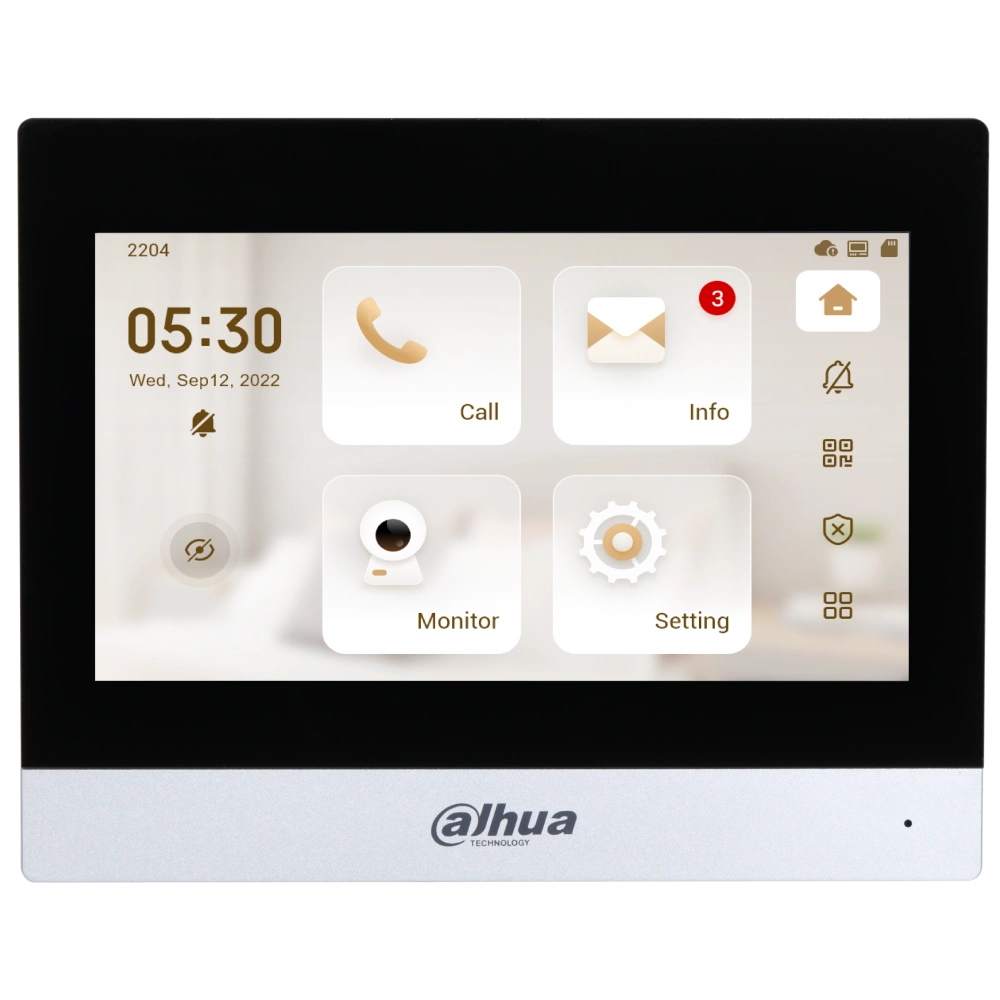 ● Дисплей: 7″ TFT 1024 × 600;● Wi-Fi: підтримується;● ОС: LINUX;● Функції: відкриття дверей, “не турбувати”;● Живлення: 12 VDC, 1 A; PoE;● Колір: сріблястий