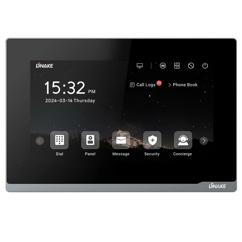 ● Дисплей: 7″ TFT 1024 × 600;● ОС: LINUX;● Опції: аудіо- та відеодомофон, екстрений дзвінок, охоронна сигналізація та керування ліфтом. Також підтримує зв’язок протоколу SIP 2.0 з IP-телефоном і IP-PBX;● Wi-Fi: IEEE802.11 b/g/n;● Пластикова рамка;● Живлення: 12В DC/PoE (802.3af)