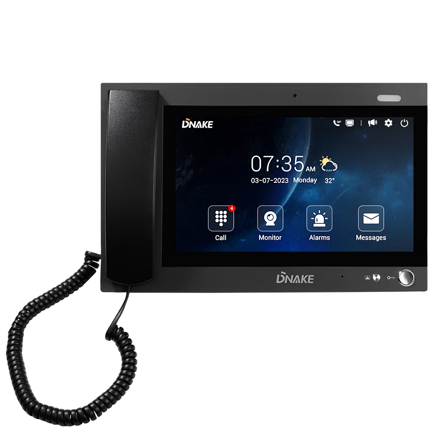 ● Дисплей: 10.1″ TFT 1024 × 600;● ОС: Android;● Опції: журнали будильників/дзвінків; надсилання/отримання повідомлень; підтримка протоколу SIP 2.0; проста інтеграція з іншими SIP-пристроями; підтримка моніторингу 16 IP-камер;● Живлення: 12В DC/PoE (802.3af)