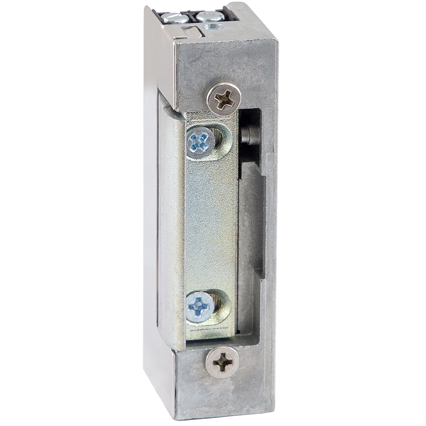 Електричне керування: нормально замкнена (замкнена без живлення, відмикання поданням напруги); Обладнана захисним діодом (виключає вплив пікових струмів на контакти реле пристрою керування доступом при спрацюванні соленоїда); Регулювання язичка: FaFix (регулювання язичка защіпки відносно корпусу, діапазон регулювання 3мм); Напруга: 10-24 В постійного або змінного струму (з можливістю довготривалого електричного розблокування при живленні напругою 11-13 В постійного струму); Сторонність: Універсальна (для лівих та правих дверей); Без зворотній планки (зворотна планка замовляється окремо відповідно до типу дверей)