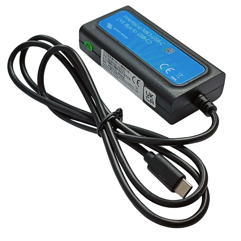 Інтерфейс MK3-USB-C забезпечує пряме з’єднання між комп’ютером або пристроєм із портом USB-C і продуктом VE.Bus Victron, таким як MultiPlus, Quattro та іншими інвертором/зарядними пристроями. Цей інтерфейс необхідний для налаштування, моніторингу, оновлення та діагностики продуктів VE.Bus.