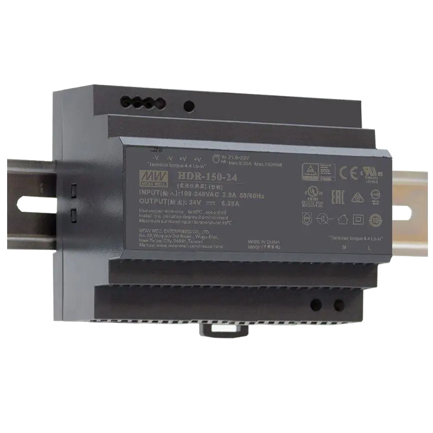 Економічний AC/DC мережевий перетворювач широкого промислового застосування. Для монтажу на DIN-рейку. Потужність: 150 Вт, вхід: 85-264VAC/120-370VDC, вихід: 24V/6.25А.