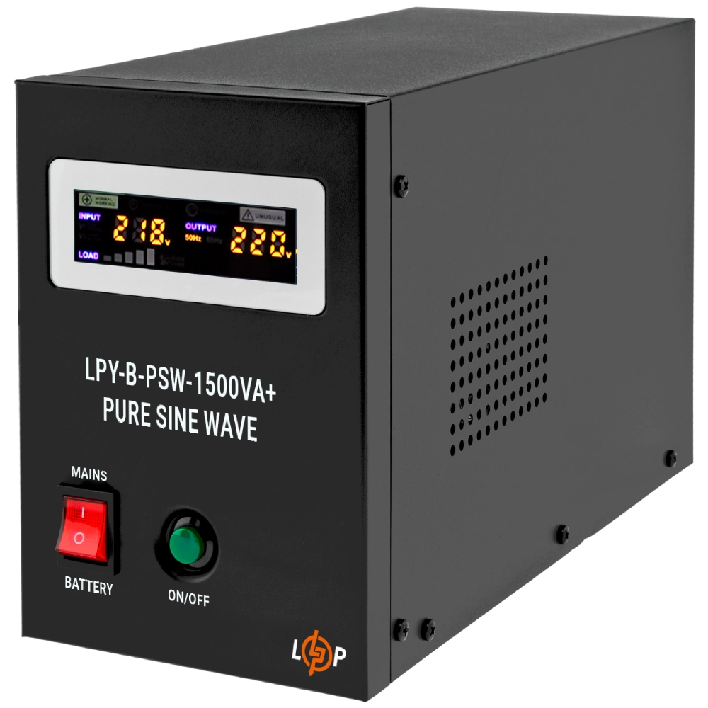 Джерела безперебійного живлення (ДБЖ) з правильною синусоїдою забезпечують автономну роботу електрообладнання від акумулятора у разі відключення живлення із загальної мережі. Джерело безперебійного живлення LPY-B-PSW-1500VA+ (1050Вт) 10A/15A має вбудовану функцію стабілізації напруги в діапазоні від 140-275 V на вході до 220±10% на виході.Типи зовнішніх акумуляторних батарей, які можна підключити до ДБЖ:• Свинцево-кислотний AGM; Ресурс роботи – 400 циклів заряд/розряд• AGM (мультигель). Ресурс роботи – 800 циклів заряд/розряд• Гелевий (Gel) акумулятор. Ресурс роботи – 1200 циклів заряд/розряд• Літій залізо фосфатний акумулятор. Ресурс роботи до 7000 циклів заряд/розряд