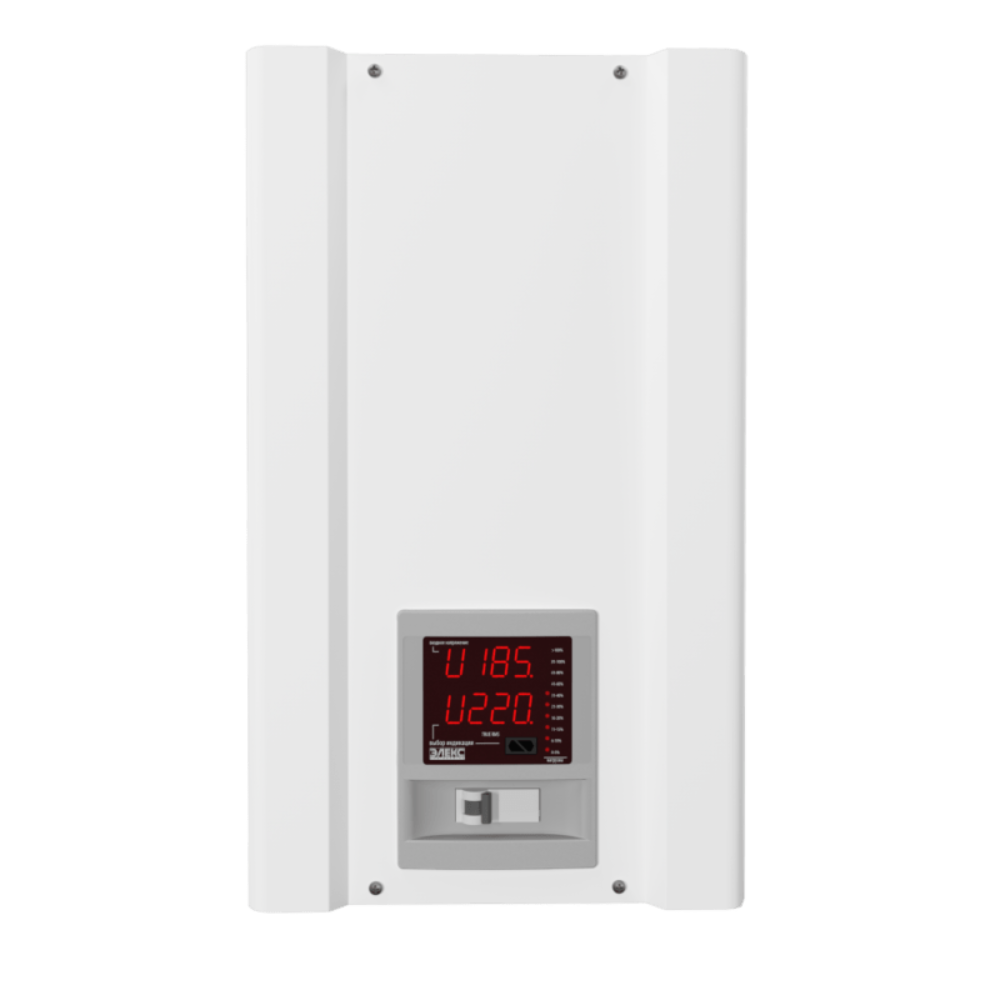 ● Однофазний стабілізатор напруги Ампер-Т У 16-1/40 v2.1 (точний) призначено для роботи в електричних мережах з коливаннями напруги від 145 до 275В;● У цьому діапазоні апарат гарантовано видає на виході напругу в межах 220±2,7%, що забезпечується завдяки використанню 16 ступенів стабілізації;● Номінальна потужність цієї моделі 9 кВт, що відповідає робочому струму автоматичного вимикача 40 А на ньому;● За необхідності отримати на виході стабілізатора напругу, відмінну від 220 В, в Ампер-Т У 16-1/40 v2.1 є функція регулювання цього значення в діапазоні 200-230 В ±2,7%;● Стабілізатор має можливість ручного підстроювання нижнього порога вимкнення (60-135В). Ця функція затребувана для навантаження з високими пусковими струмами, під час запуску якого можливе сильне просідання напруги й аварійне вимкнення стабілізатора. У разі активації цієї опції стабілізатор протягом хвилини дасть змогу запустити будь-який двигун або насос навіть у разі просідання напруги до 60В у мережі;● Встановлювати й експлуатувати стабілізатор рекомендується в сухих і опалювальних приміщеннях. Настінну установку рекомендується проводити у вертикальному положенні (вентиляторами вгору), залишивши зверху і знизу 10-15 см для охолодження;● Підключення здійснюється до наявної проводки через клемну колодку.