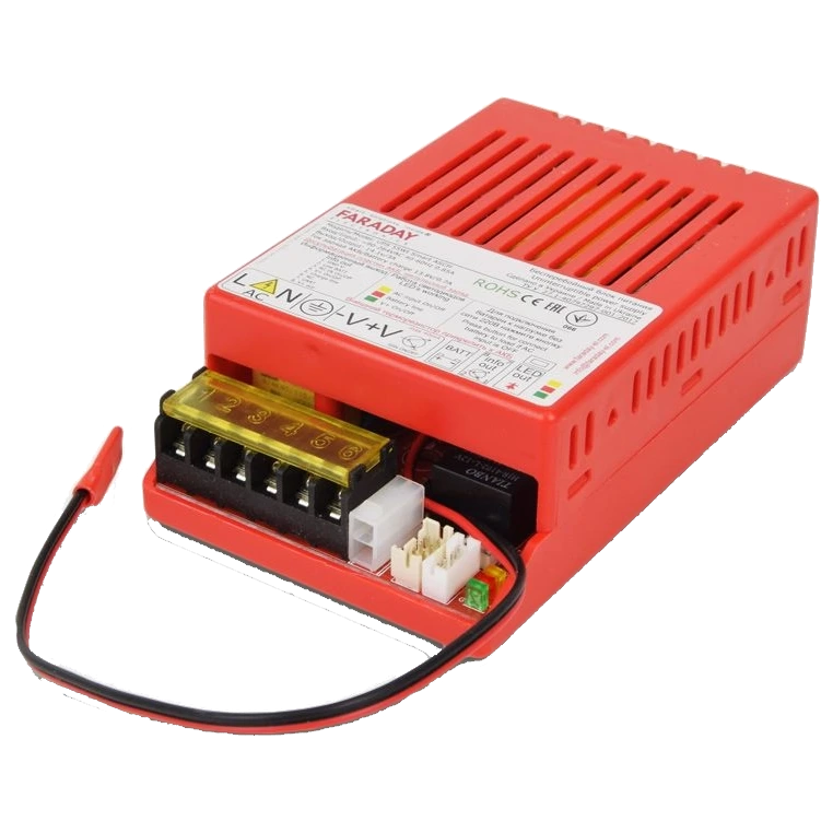 ● номінальна вихідна потужність: 55Вт;● вихідна напруга (від мережі): 14.1В;● вихідна напруга (від АКБ): 14.4-14.7В;● напруга заряду АКБ: 14.4В;● напруга відключення АКБ: 10.4-10.6В;● струм відключення АКБ (без мережі): 4.5А;● вихідний струм на навантаження: 0-3.3А;● струм заряду АКБ: 0-3.3А;● рекомендована ємність АКБ: LiFePO4 (літій залізо фосфатний) 12В 18А·год; ● струм підтримки зарядженого АКБ: 20-100мА в залежності від типу АКБ;● струм холостого ходу від АКБ: 30мА