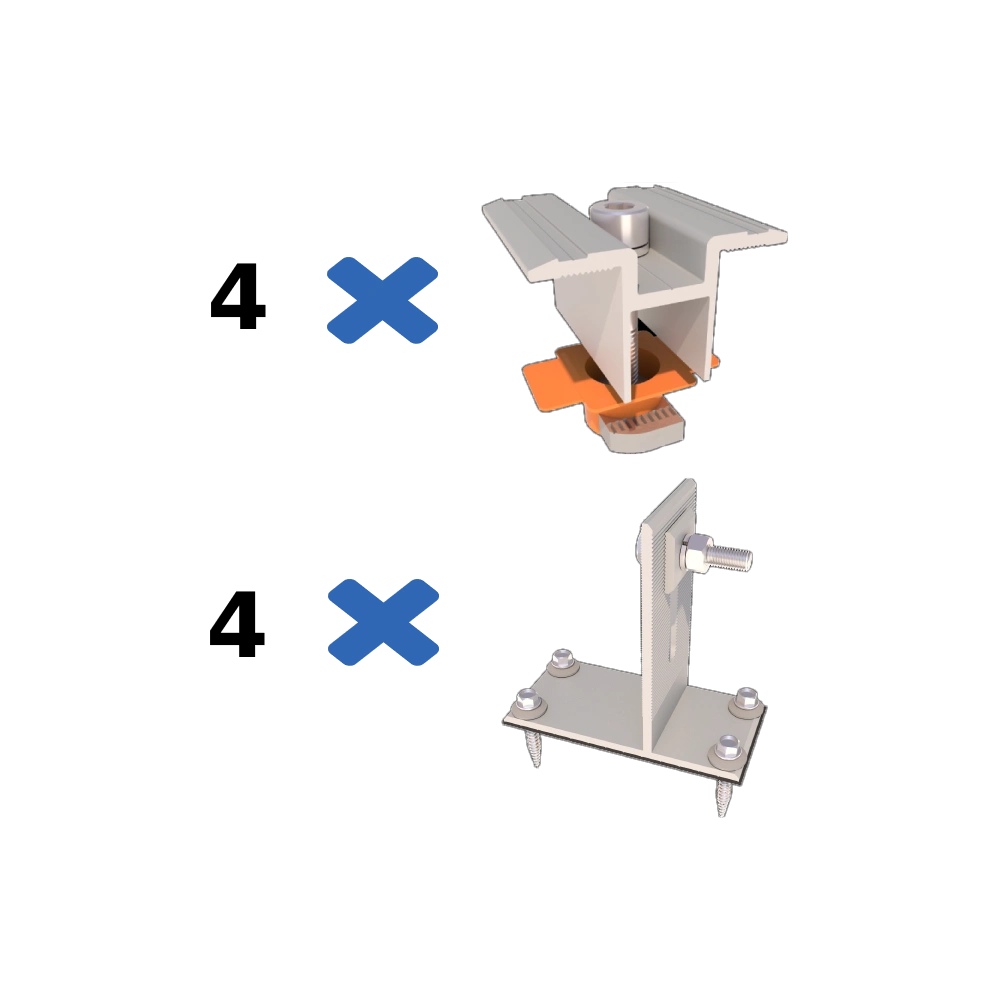 Комплект призначений для монтажу на бітумній черепиці. Монтаж профілю здійснюється за допомогою T- подібного кронштейна кріплення для бітумної черепиці. Для герметичності варто використовувати бітумну стрічку (в комплект не входить). Для закріплення кронштейнів використовуються саморізи.