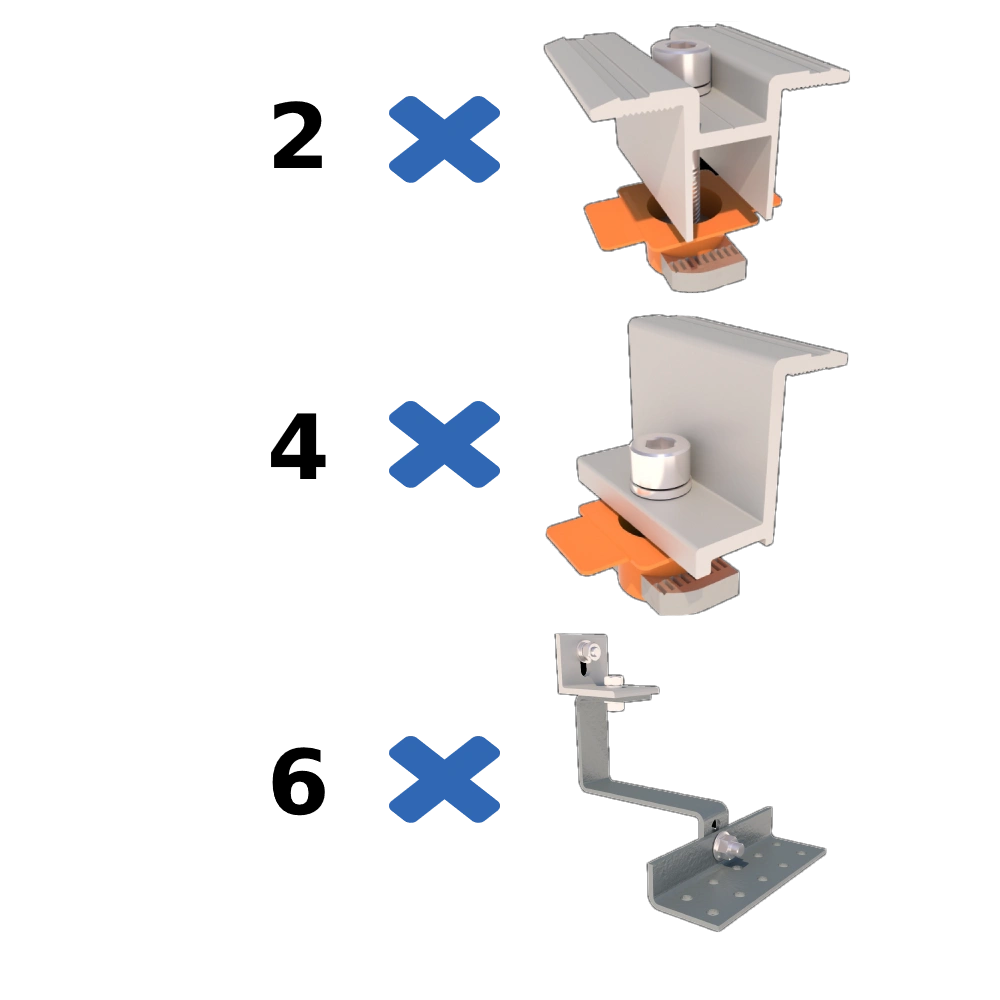 Комплект призначений для монтажу на керамічній черепиці. Монтаж профілю здійснюється за допомогою кронштейна кріплення для керамочерепиці. Кронштейн виконаний з нержавіючої сталі і зручно регулюється завдяки пазам. Прикручується саморізами до обрешітки під черепицею, тому виключає протікання, чи пошкодження даху.