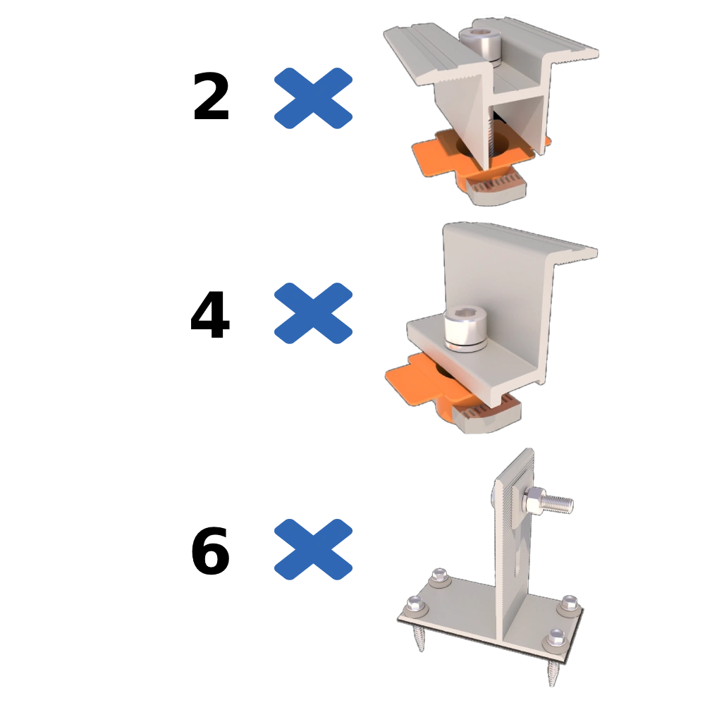Комплект призначений для монтажу на бітумній черепиці. Монтаж профілю здійснюється за допомогою T- подібного кронштейна кріплення для бітумної черепиці. Для герметичності варто використовувати бітумну стрічку (в комплект не входить). Для закріплення кронштейнів використовуються саморізи.