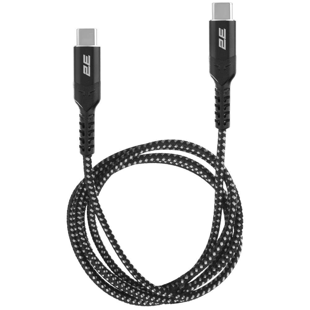 Кабель заряджання/синхронізації 1м 240Вт плетений чорний 2E Type-C USB-C > USB-C