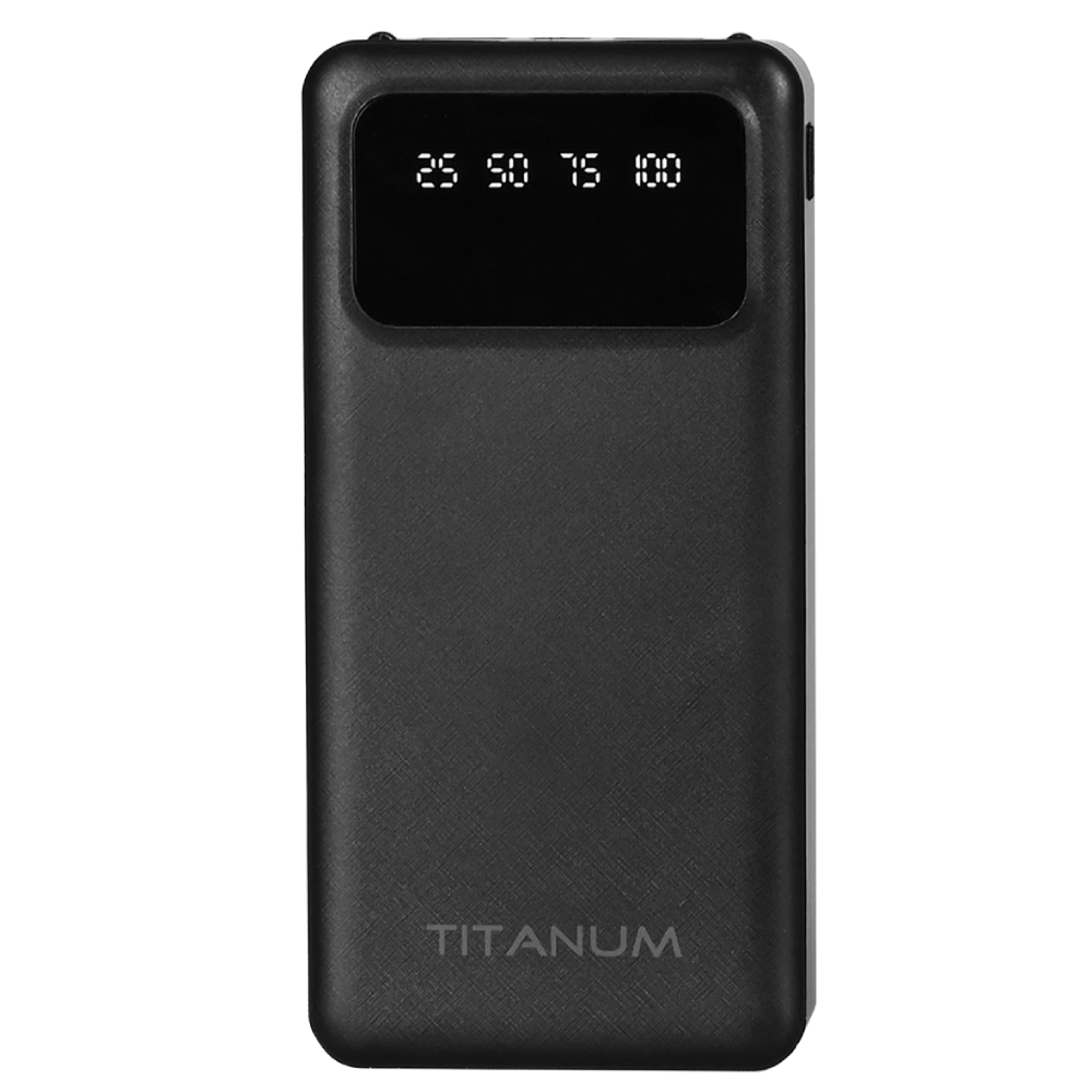 Портативний зарядний пристрій (Power Bank) TITANUM призначений для зарядки планшетів, смартфонів, мобільних телефонів та інших пристроїв та гаджетів. Він дозволяє підтримувати улюблені гаджети в робочому стані тривалий час в поході, подорожі, поїздці чи в ситуації коли немає електроенергії. Корпус виконаний з АBS пластику, який має рифлену поверхню, що в свою чергу допомагає запобігати подряпинам на корпусі та надійніше тримати в руці. КОРИСНІ ФУНКЦІЇ: Має два ліхтарики вбудованих в корпус на передній частині та дисплей, який відображає рівень заряду батареї відповідно до позначок 25, 50, 75 та 100%.  Вихідна напруга: має 2 USB виходи кожен з яких видає 5В, 2.1А (max.), максимальна вихідна потужність 2.1А (max.)  Вхідна напруга: 5В, 2А – для обох входів Micro USB та Type-C.  В комплект входить кабель Type-C довжиною 30см для заряджання пристрою.