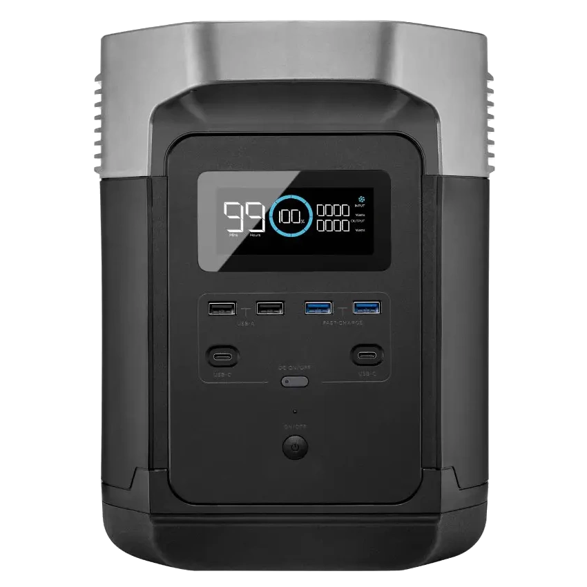 EcoFlow DELTA – потужна, і при цьому портативна станція, що має запас енергії, що перевищує 1 кіловат. При повній зарядці може кілька годин живити електроприлади в умовах відсутності електрики. Наприклад, до цього джерела можна підключити кімнатне освітлення, холодильник або телевізор, модеми, роутери та багато іншого, включаючи навіть техніку більшого споживання. Підключення здійснюється як у звичайну розетку. Також є USB-порти для прямої зарядки мобільних гаджетів. Це повноцінне альтернативне джерело енергії. Детальна інформація про заряд, що залишився, видно на вбудованому дисплеї. Важливо, що електростанція може заряджатися від сонячних панелей, що підключаються до неї за допомогою кабелю.