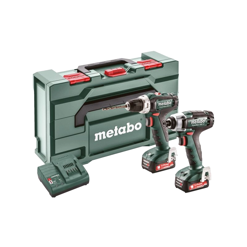 Склад комплекту Metabo Combo Set 2.7.1 12 V:Акумуляторний шуруповерт Metabo PowerMaxx BS 12;Акумуляторний ударний гайковерт Metabo PowerMaxx SSD 12;2 літій-іонні акумуляторні батареї ємністю 2,0 Аг серії Li-Power 12 В;зарядний пристрій SC 30;пластиковий кейс MetaBox 145