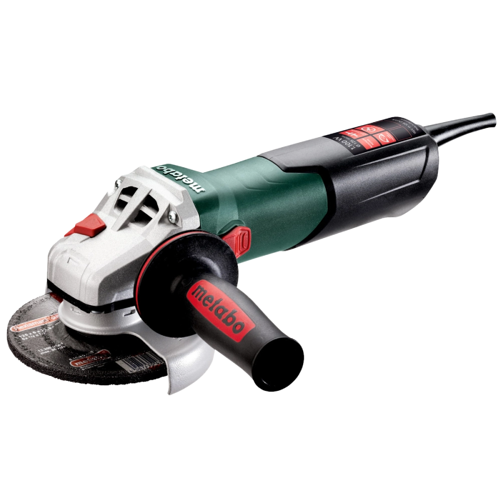 Без втоми, як ніколи раніше: компактна кутова шліфувальна машина з регулюванням частоти обертів та найменшим обхватом рукоятки в своєму класі потужності для ідеальної ергономіки. Новий запатентований двигун Metabo Marathon: до 50 % більший крутний момент та до 20 % більша здатність до перевантажень для швидшого знімання матеріалу та довшого терміну експлуатації. Повнохвильова електроніка Vario-Constamatic (VC) з регулювальним колесом: для роботи з кількістю обертів, що вимагається властивостями матеріалу і залишається майже константною під навантаженням. Швидка заміна дисків без інструментів одним натисненням кнопки завдяки системі Metabo M-Quick. Захисний кожух, що регулюється без застосування інструменту; фіксується із захистом від провертання. Механічна запобіжна муфта Metabo S-automatіc: при блокуванні диска забезпечує найменшу віддачу серед конкурентів — для максимального захисту користувача та безперервної роботи. Електронний захист від перевантаження, м’який пуск та захист від повторного пуску. Корпус редуктора може монтуватися з поворотом кроками 90° для управління лівою рукою або для різання. Аварійне відключення вугільних щіток для захисту двигуна.