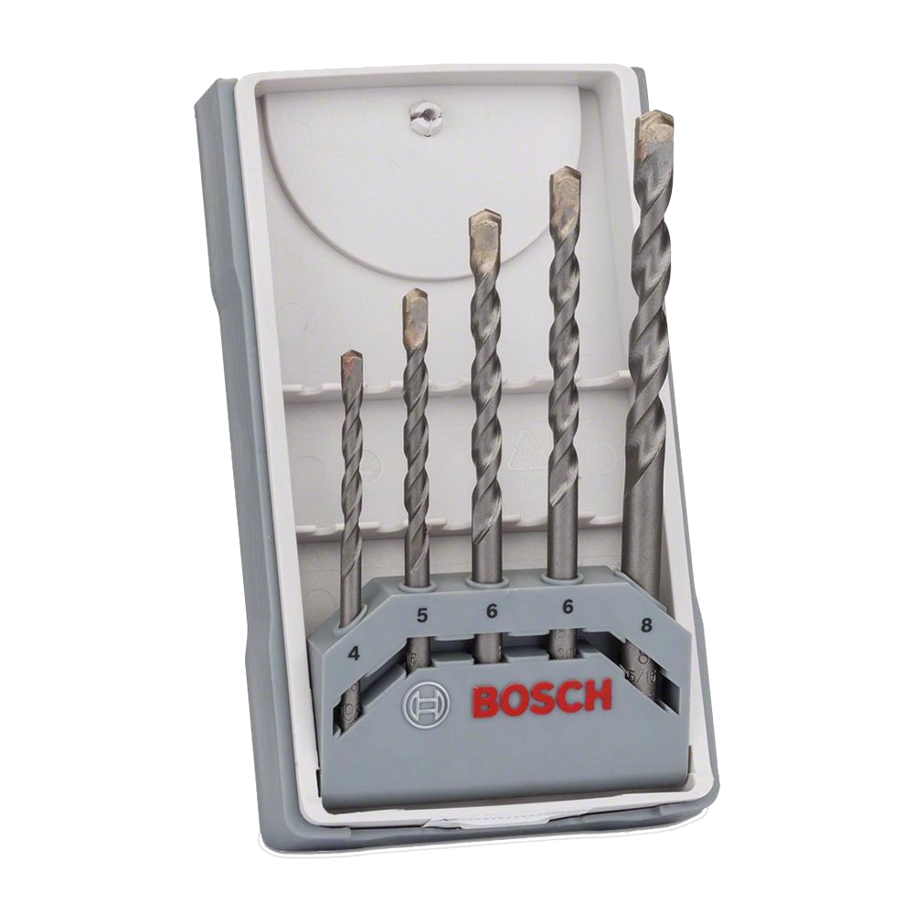 Тип набір свердел (5 шт);Призначення по бетону;Діапазон розмірів 4 – 8 мм;Тип хвостовика циліндричний;Діаметр свердел в наборі 4 мм; 5 мм; 6 мм; 8 мм