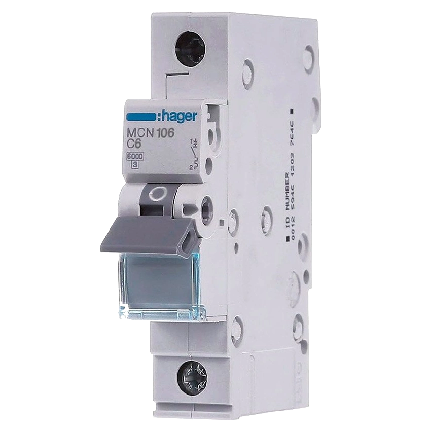 Автоматичний вимикач 1P 6kA C-6A 1M Hager MCN106