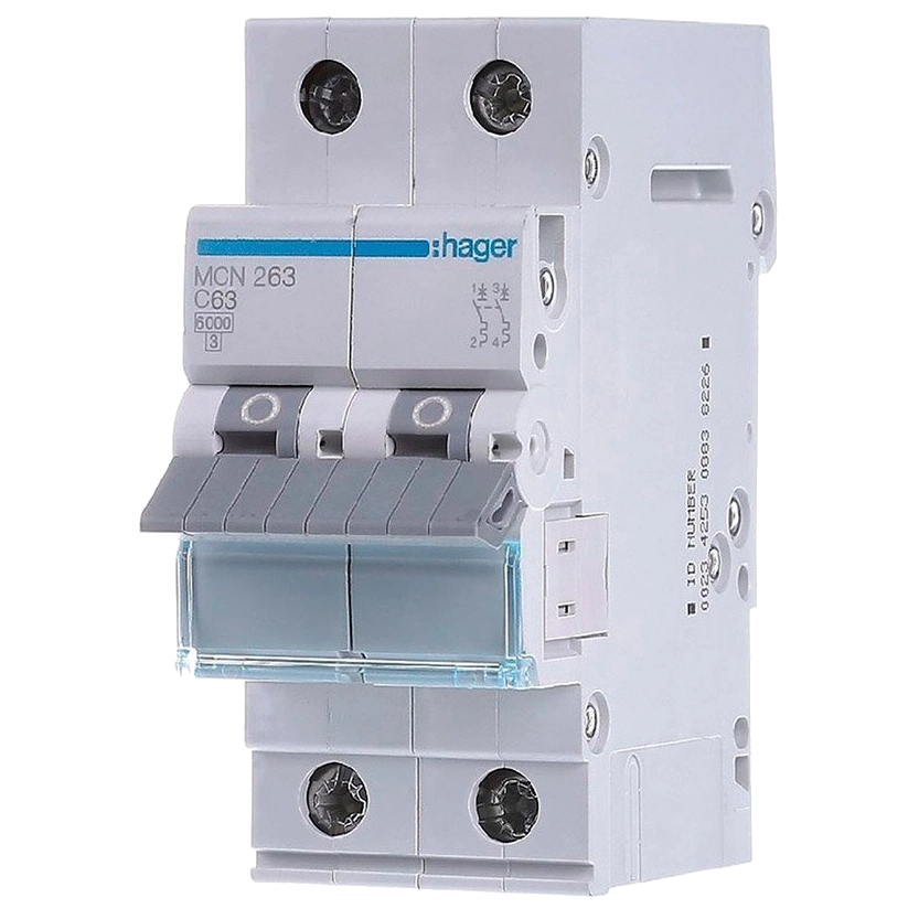 Автоматичний вимикач 2P 6kA C-63A 2M Hager MCN263