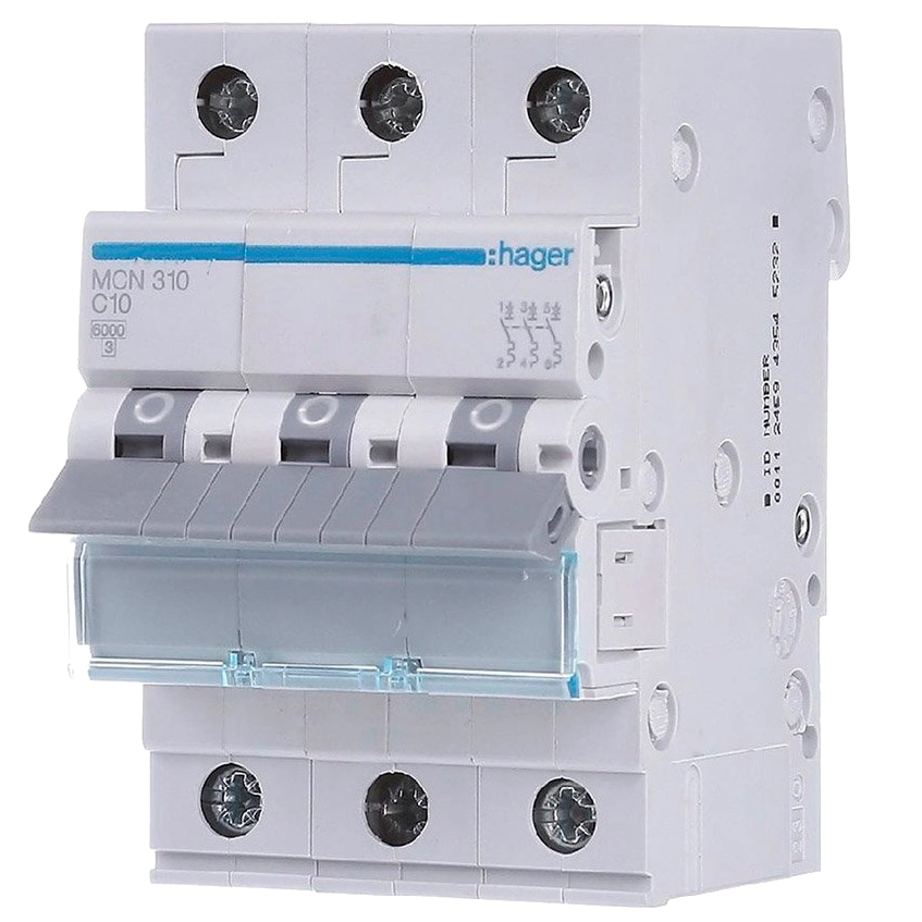 Автоматичний вимикач 3P 6kA C-10A 3M Hager MCN310