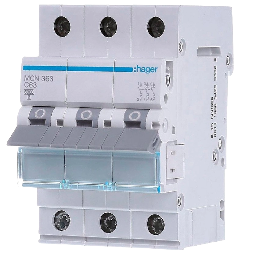 Автоматичний вимикач 3P 6kA C-63A 3M Hager MCN363