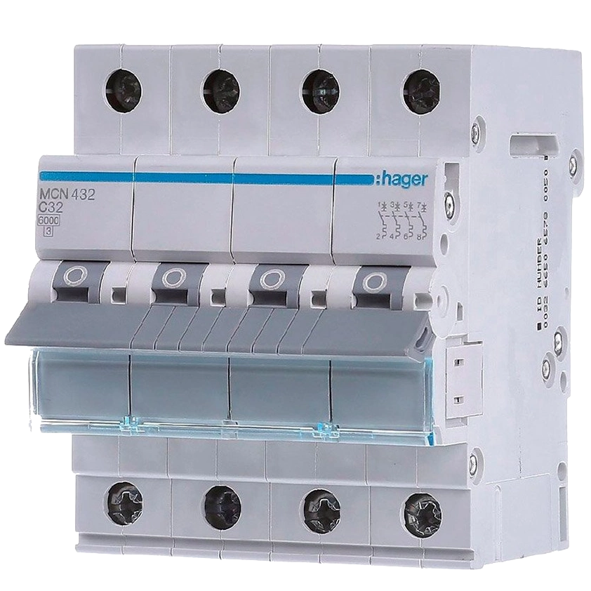Автоматичний вимикач 4P 6kA C-32A 4M Hager MCN432