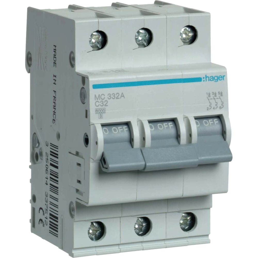 Автоматичний вимикач Hager In=32 А, 3п, С, 6 kA, 3м MC332A