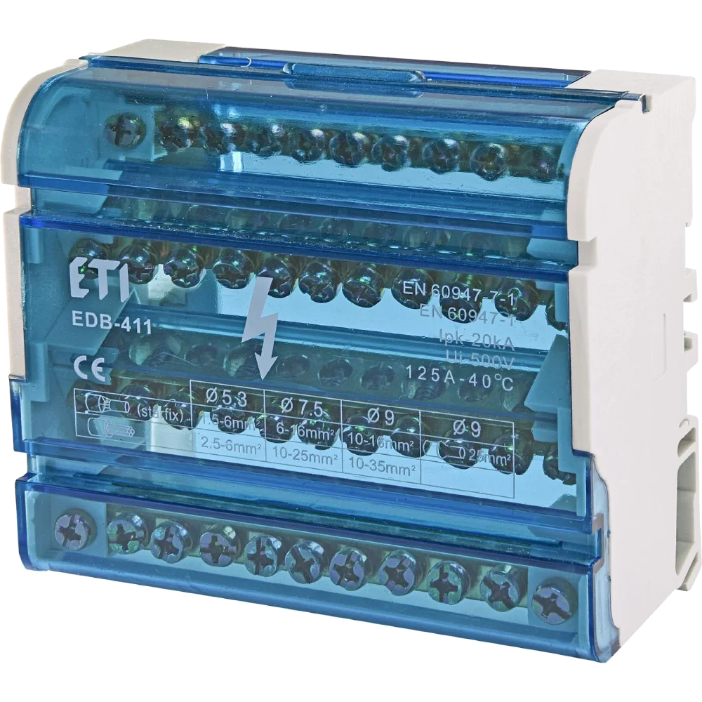 Блок розподільчий (4p, 3L+PE/N) 125A 11 виходів ЕТІ EDB-411