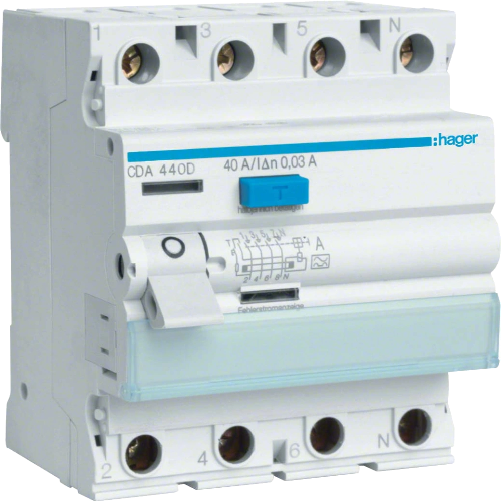 Диференційне реле 4P, 6kA, 63A, 30mA, AО: “A” Hager CDA463D