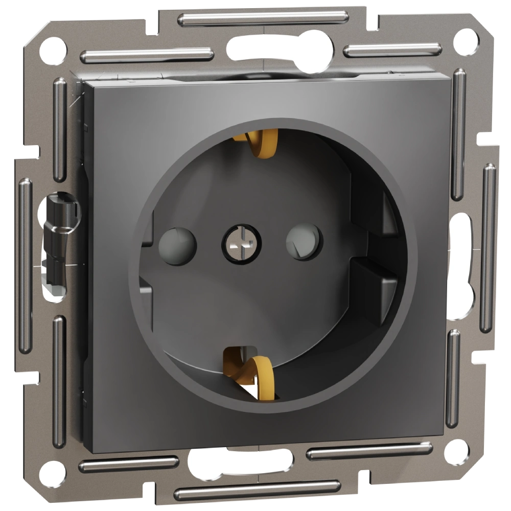 Розетка із заземленням та шторками антрацит Schneider Electric Asfora EPH2900271