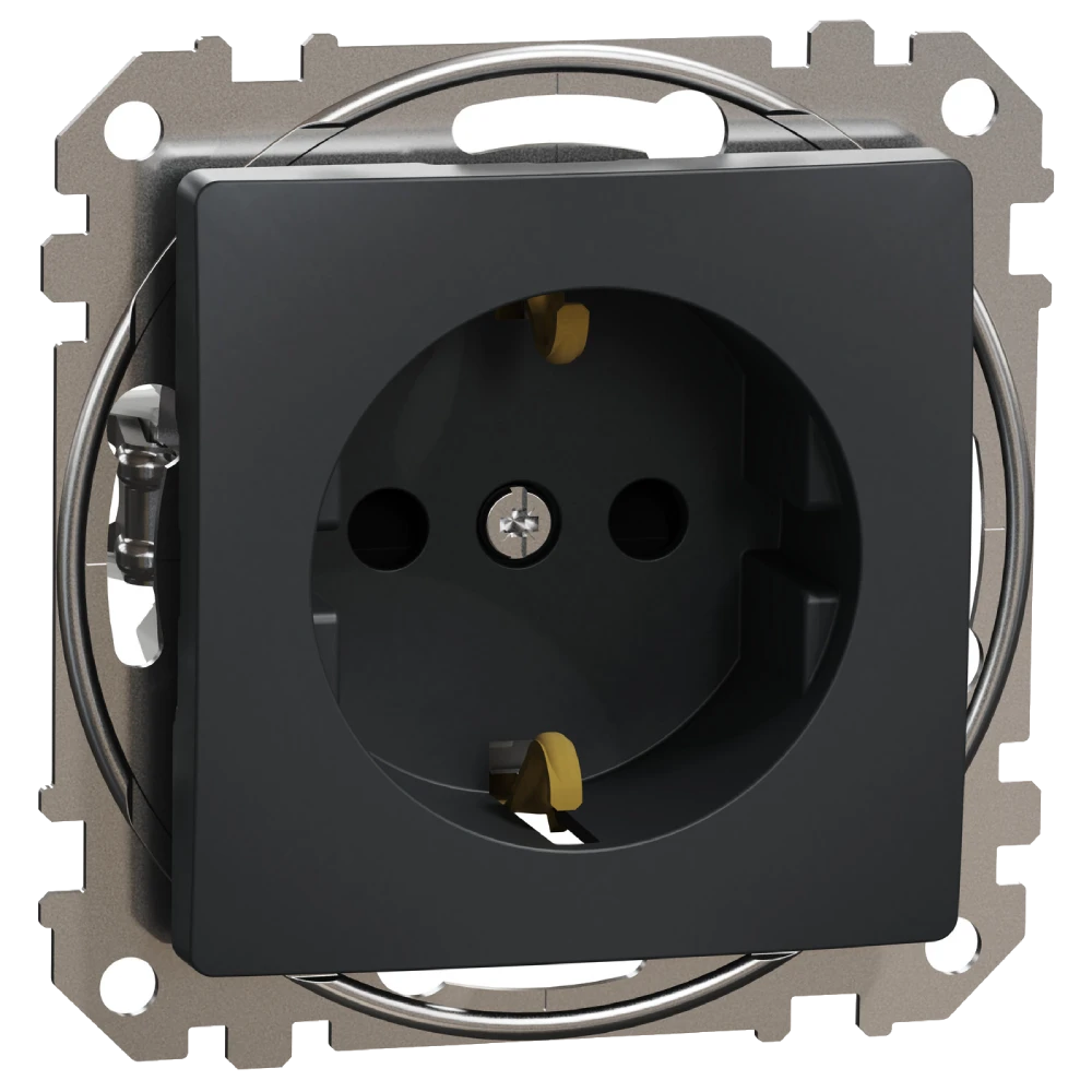 Розетка з заземленням та зі шторками Чорний Sedna Design Schneider Electric Sedna Design & Elements SDD114022