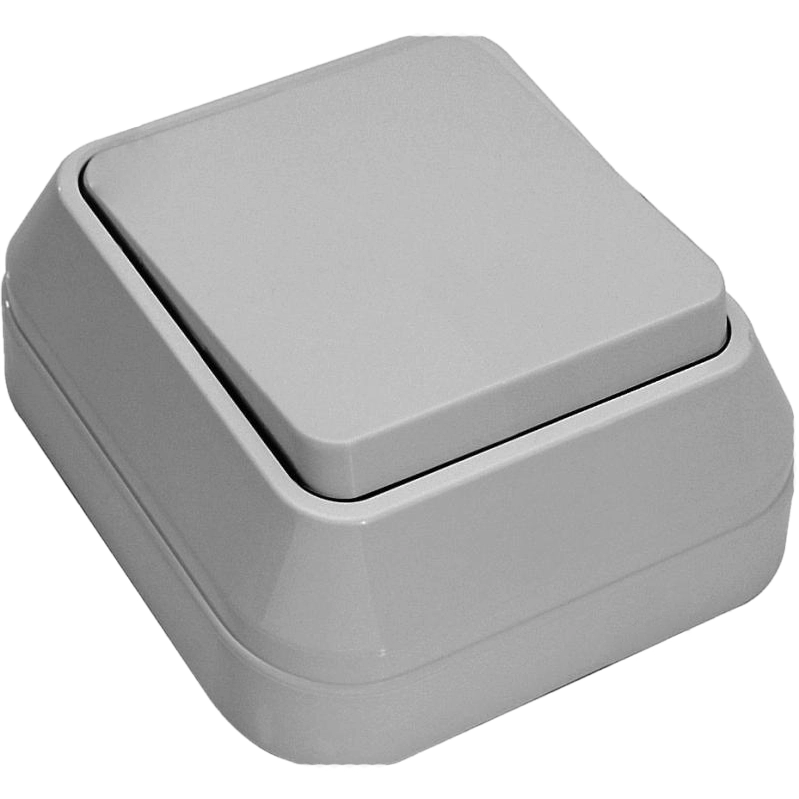 Вимикач зовнішній, одноклавішний, квадратний, без підсвічування, без заземлення, IP44, 250 В, 10 А, ABS-пластик, колір сірий