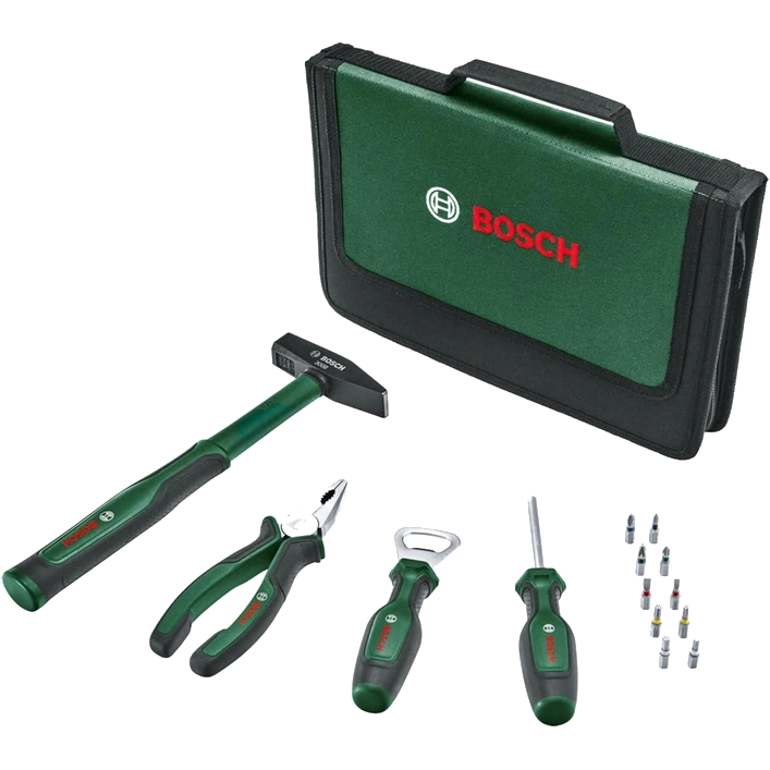 ● До набору інструментів Bosch Easy Starter входять комбіновані плоскогубці, універсальна викрутка, молоток 300 г, відкривачка для пляшок, 10 біт PH1/2, PZ1/2, S4/5, Torx20/25, H4/5;● Йдуть у м’якому пеналі з нетканого матеріалу, в якому для кожного інструменту передбачено окреме місце;● Призначається для використання в побуті, дасть змогу вирішити різноманітні завдання з ремонту, технічного обслуговування та оздоблення;● Високоякісні матеріали виготовлення і точність обробки для тривалої роботи;● Відмінна ергономіка для оптимального контролю та комфорту.