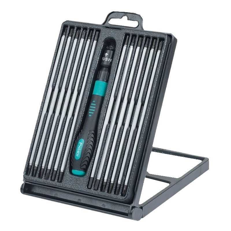 Набір з 13 предметів, який включає 12 двосторонніх прецизійних викруток (в сумі 24 викрутки різної конфігурації) та ручка-тріскачка на 3 положення. Склад набору: PH000, PH00, PH0, PH1, SL 1,5 мм, 2 мм, 3 мм, 4 мм, PZ1, PZ0, T05H, T06H, T20H, T07H, T08H, T09H, T10H, T15H, H1,5 мм, H2,0 мм, H2,5 мм, H3,0 мм, H3,5 мм, H4,0 мм.