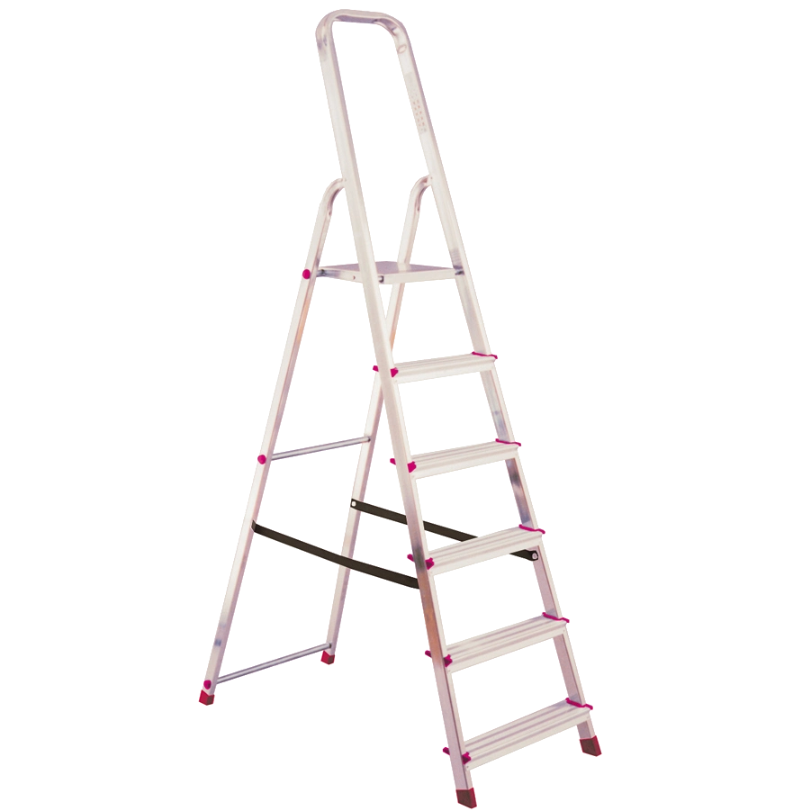 Стабільна рама драбини та опорні стійки з алюмінієвої прямокутної труби. Висока дуга безпеки. Профільовані щаблі в драбинці, шириною 80 мм. Багаторазове клепане з'єднання між рамою та сходами. Наявність захисних наконечників на торцях ступенів драбини. Кількість ступенів: 7; Робоча висота (мах): 3.45 м; Висота до платформи: 1.45 м; Навантаження (мах): 150 кг