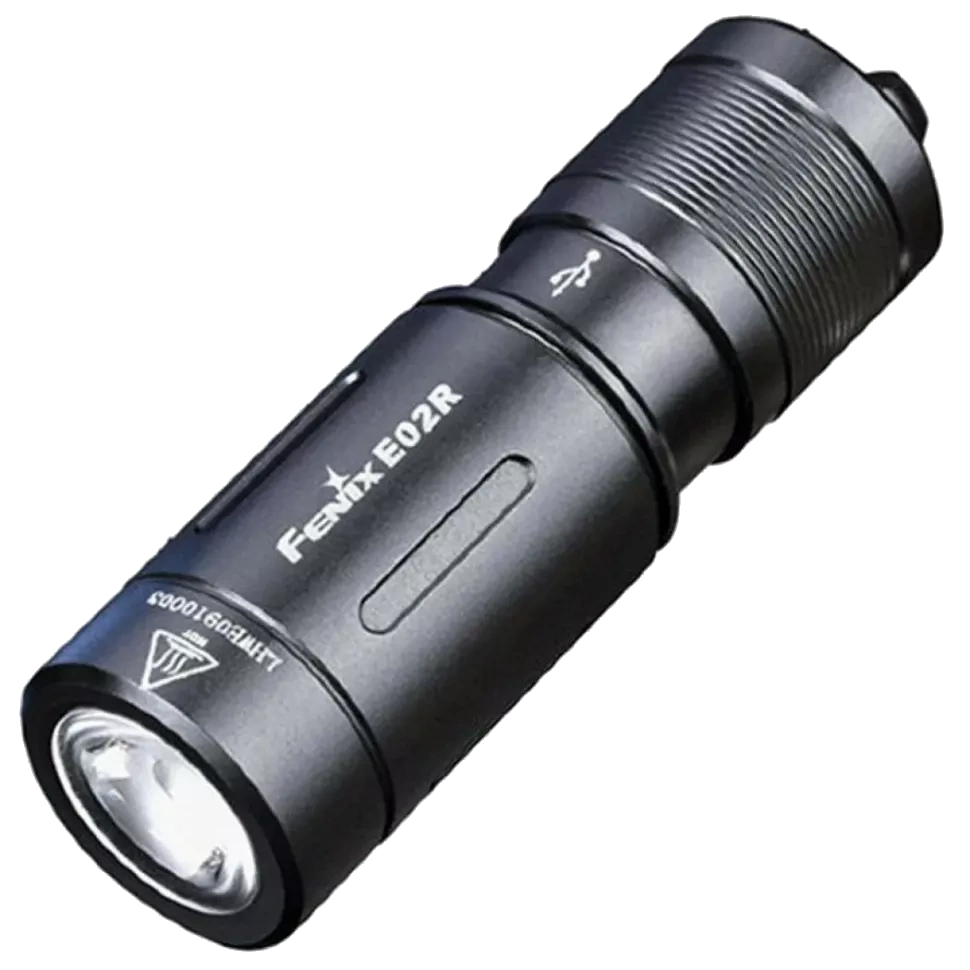 Модель Fenix E02R являє собою акумуляторний прилад, який надасть користь в якості брелка на ключі. Одне з основних переваг ліхтаря – його компактні розміри. Важить він не більше 15 грам. Такий мініатюрний ліхтарик дає світловий потік в 200 люменів, а дистанція поширення променя досягає 49 метрів. Функціонує з вбудованим акумулятором ємністю в 120 міліампер-годин. Літій-полімерний акумулятор забезпечує роботу ліхтарика, а освітлення виходить за рахунок застосування світлодіода Cree XP-G2 S3. Освітлення-білого кольору. Передбачений порт micro-USB для підзарядки акумулятора.