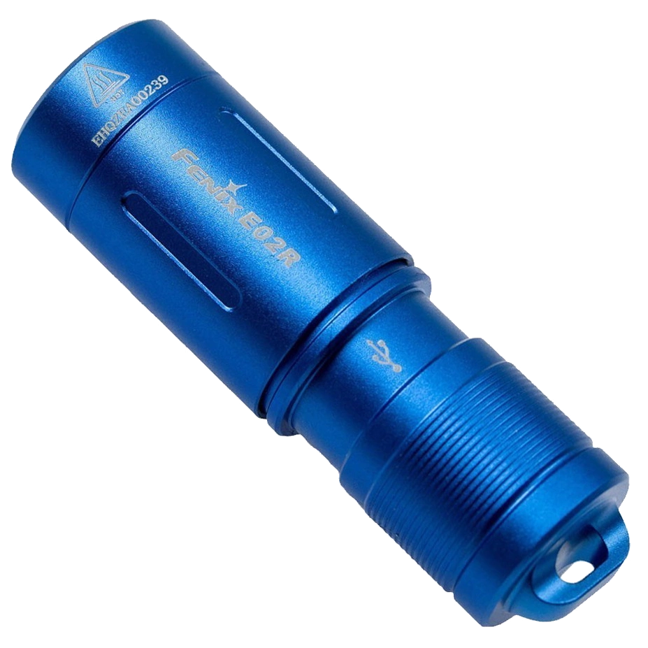 Модель Fenix E02R являє собою акумуляторний прилад, який надасть користь в якості брелка на ключі. Одне з основних переваг ліхтаря – його компактні розміри. Важить він не більше 15 грам. Такий мініатюрний ліхтарик дає світловий потік в 200 люменів, а дистанція поширення променя досягає 49 метрів. Функціонує з вбудованим акумулятором ємністю в 120 міліампер-годин. Літій-полімерний акумулятор забезпечує роботу ліхтарика, а освітлення виходить за рахунок застосування світлодіода Cree XP-G2 S3. Освітлення-білого кольору. Передбачений порт micro-USB для підзарядки акумулятора.