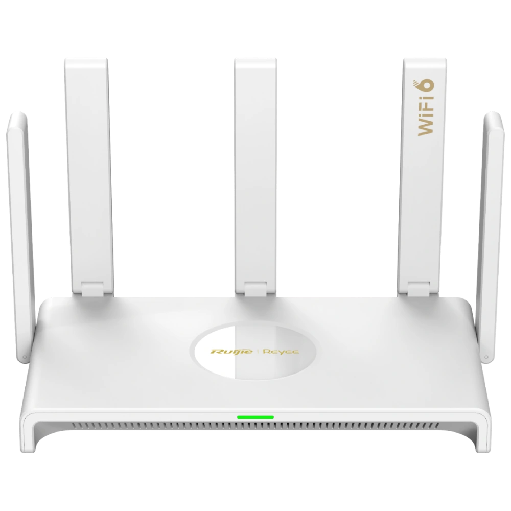 ● Стандарти Wi-Fi Wi-Fi 6 (802.11ax);● MIMO 2,4 ГГц: 2×2 5 ГГц: 2×2;● Антени 5 зовнішніх антен;● Інтерфейс 2x порт WAN 10/100/1000 Base-T (1 порт гібридний LAN/WAN), 3 порти LAN 10/100/1000 Base-T ;● Розширена технологія Ruijie DDNS, VPN, OFDMA, IPv6 ;● Користувачі, що рекомендуються 60;● Макс. Швидкість Wi-Fi 2,4 ГГц: 574 Мбіт/с 5 ГГц: 2402 Мбіт/с