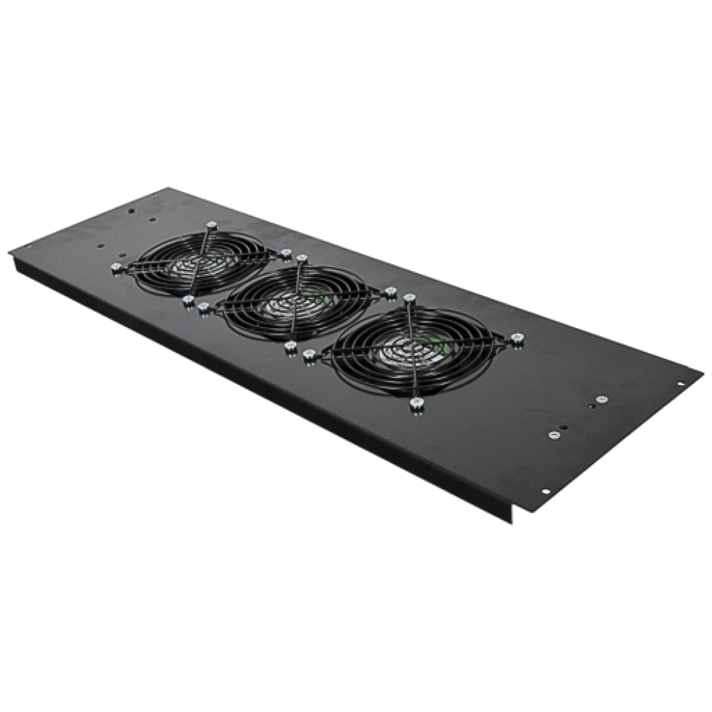 У вентилятроному блоці використовуються вентилятори SUNNON, що зарекомендували себе високою надійністю, довговічністю та продуктивністю. Вентилятори закриті дротяною решіткою, яка не створює завихрення та опору потоку повітря, що значно знижує рівень шуму вентиляторного блоку. Сервер(и) у шафі створюють більше шуму, ніж 3-х вентиляторний блок. У шафу можна встановити стільки вентиляторних блоків, скільки в ній є заглушок у даху. Наприклад у шафу глибиною 675 мм – 2 блоки, 865мм – 3 блоки, 1055 – 4 блоки.