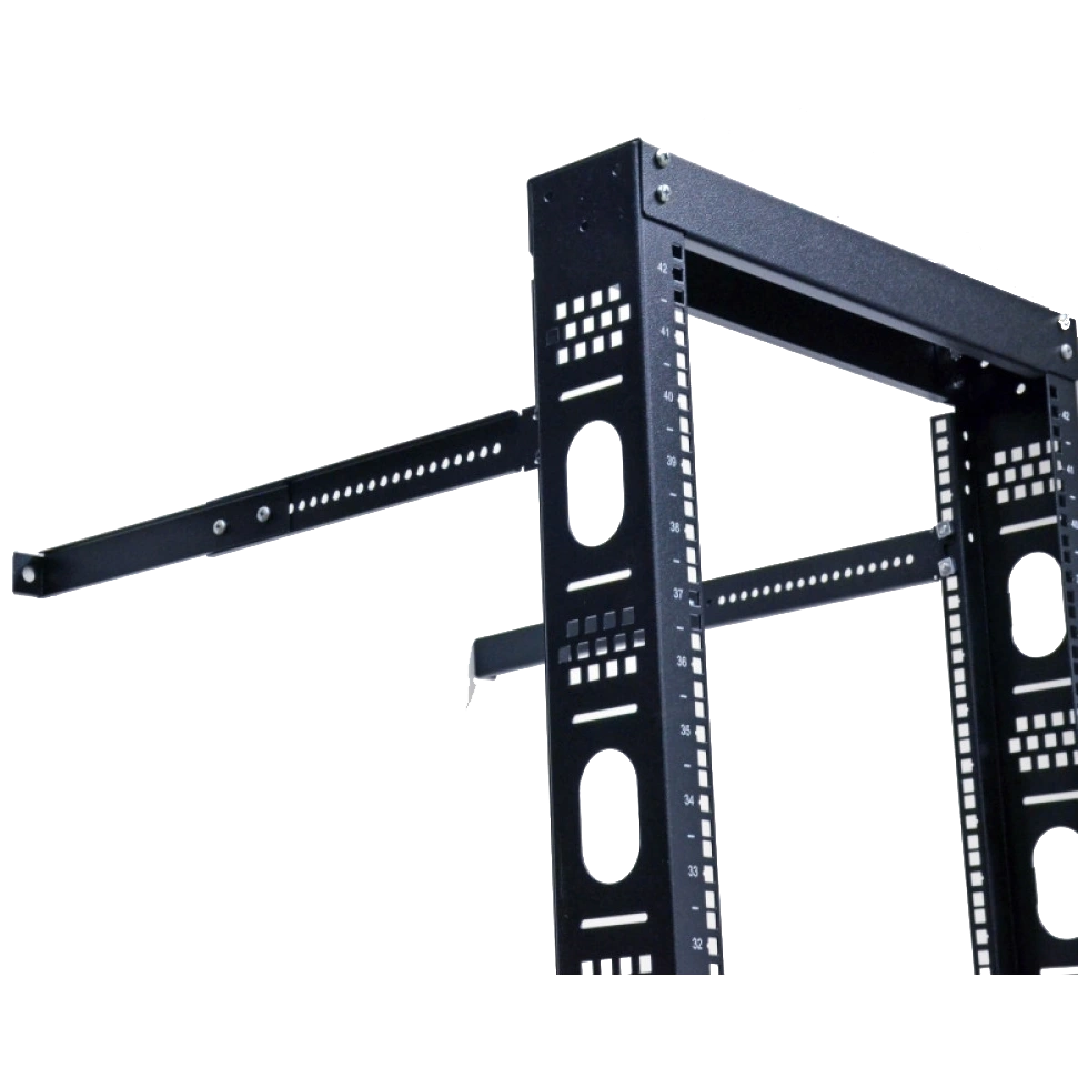 Комплект кріплення стійки до стіни застосовують для збільшення вертикальної стійкості однорамних стійок. Рекомендується використання в разі довгострокової установки серверної стійки або при установці устаткування глибиною більше 300 мм. Для фіксації до цегляної / бетонної стіні використовують металеві анкера, для гіпсокартону рекомендується використовувати розпірні дюбелі Моллі. До рами стійки фіксатори кріпляться в пази юнітного кріплення висотою 1U (1 юніт), розташовані на бічній частині вертикальних напрямних.